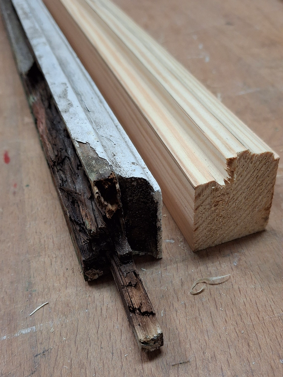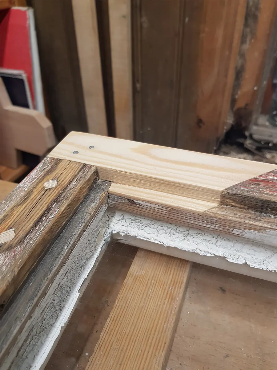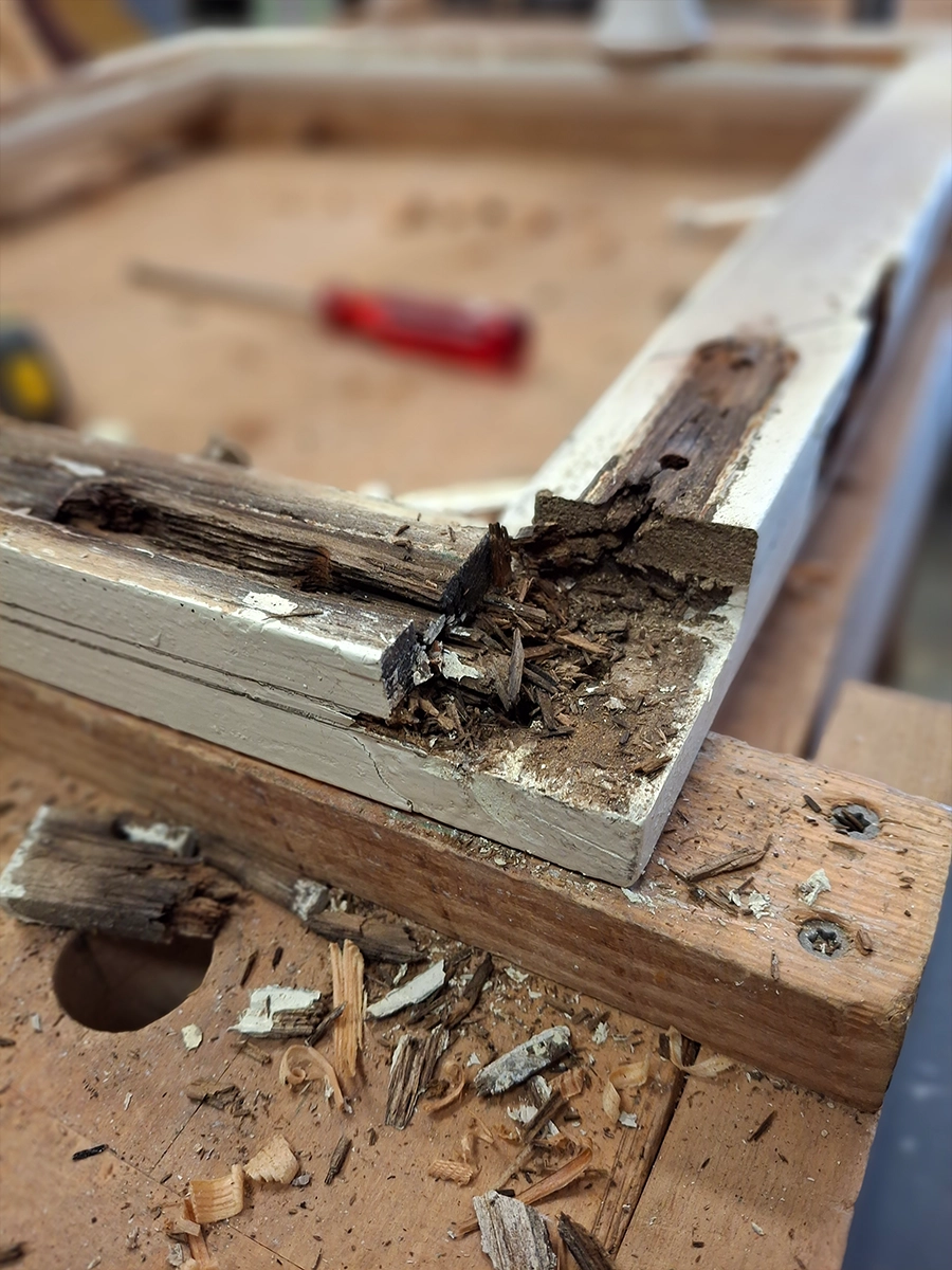 Byter ut trasiga och ruttna fönsterdelar som inte är i bra skick.